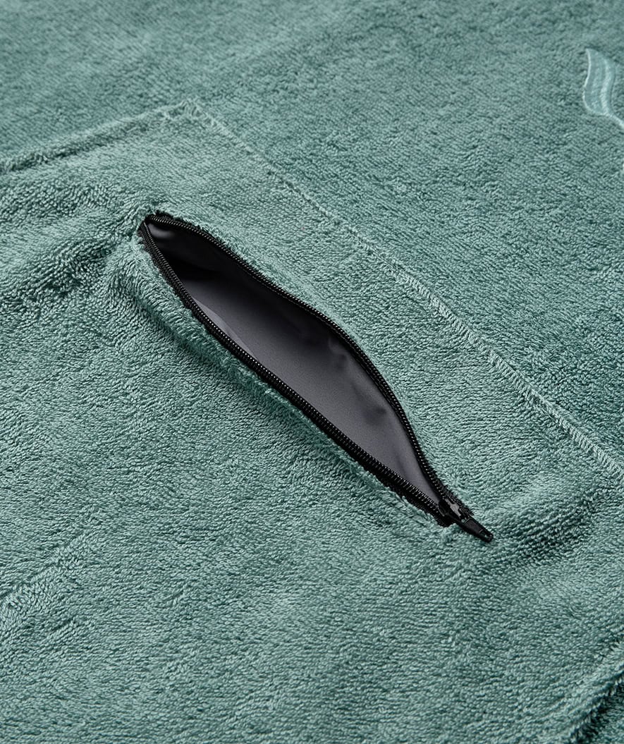 Get warm immediately after any swim or bath and change swimwear easily and completely discreetly with our Cotton Poncho for adults. Made from the softest 100% long-fibered cotton, which also absorbs water to a particularly high degree, and with several small but lovable additions: waterproof kangaroo pocket for mobile/wallet on the front, oversized hood for protection against rain and wind, large armholes and an opening at the bottom for easy changing under the poncho, and suitable in size for both men and women as well as children from 15 years and up. Here in the color Forrest Green.