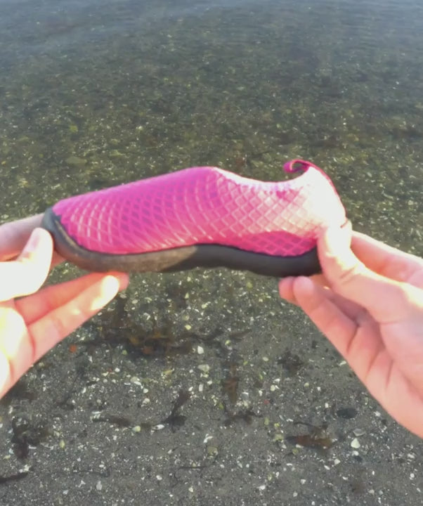 The most important purpose of a bathing shoe is of course to avoid slipping by the pool, stepping on broken glass or wet stones in the water. The sole is made non-slip and with a water-grip function, which comes from the special design of the sole, which allows water to seep up between the construction, and thus you get a firmly planted footing regardless of the situation or surface.