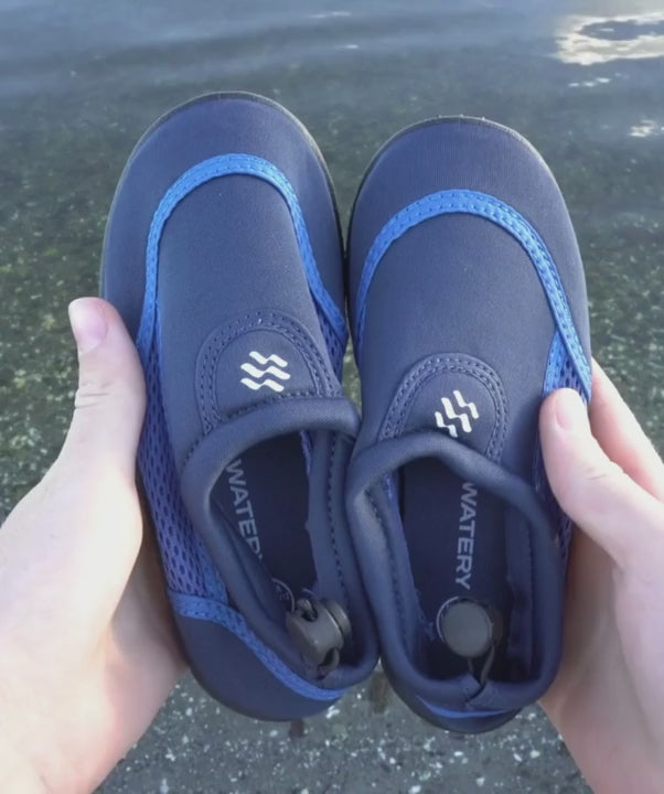 Inside the swim shoes themselves, a comfortable and shock-absorbing sole is built in, so the kid avoids hard shocks up the body as he/she moves quickly around.