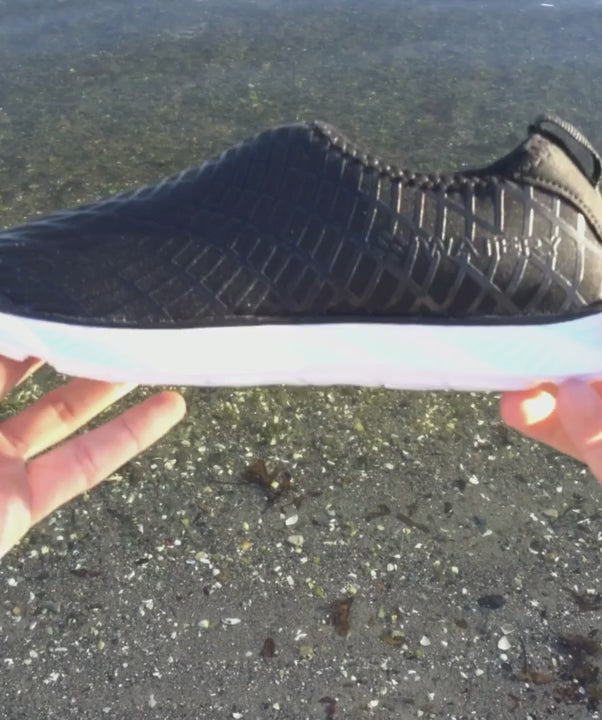 The main purpose of a swim shoe is, of course, to avoid slipping by the pool, stepping on glass shards, or on wet stones in the water. The outsole is made non-slip with a water-grip function that comes from the special design of the outsole, allowing water to seep up between the construction, providing you with a solid foothold in any situation or surface.