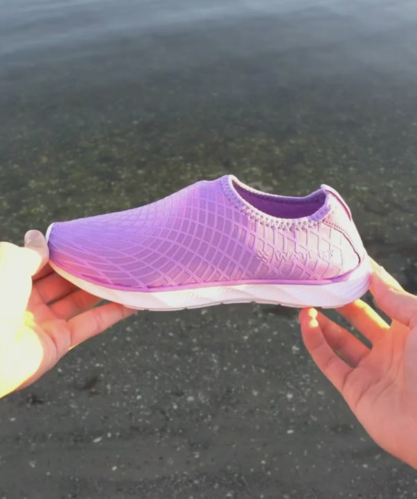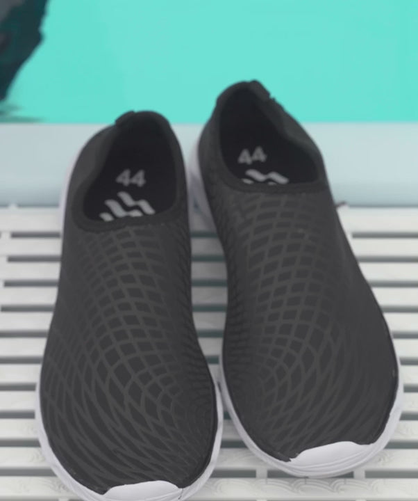 The main purpose of a swim shoe is, of course, to avoid slipping by the pool, stepping on glass shards, or on wet stones in the water. The outsole is made non-slip with a water-grip function that comes from the special design of the outsole, allowing water to seep up between the construction, providing you with a solid foothold in any situation or surface.