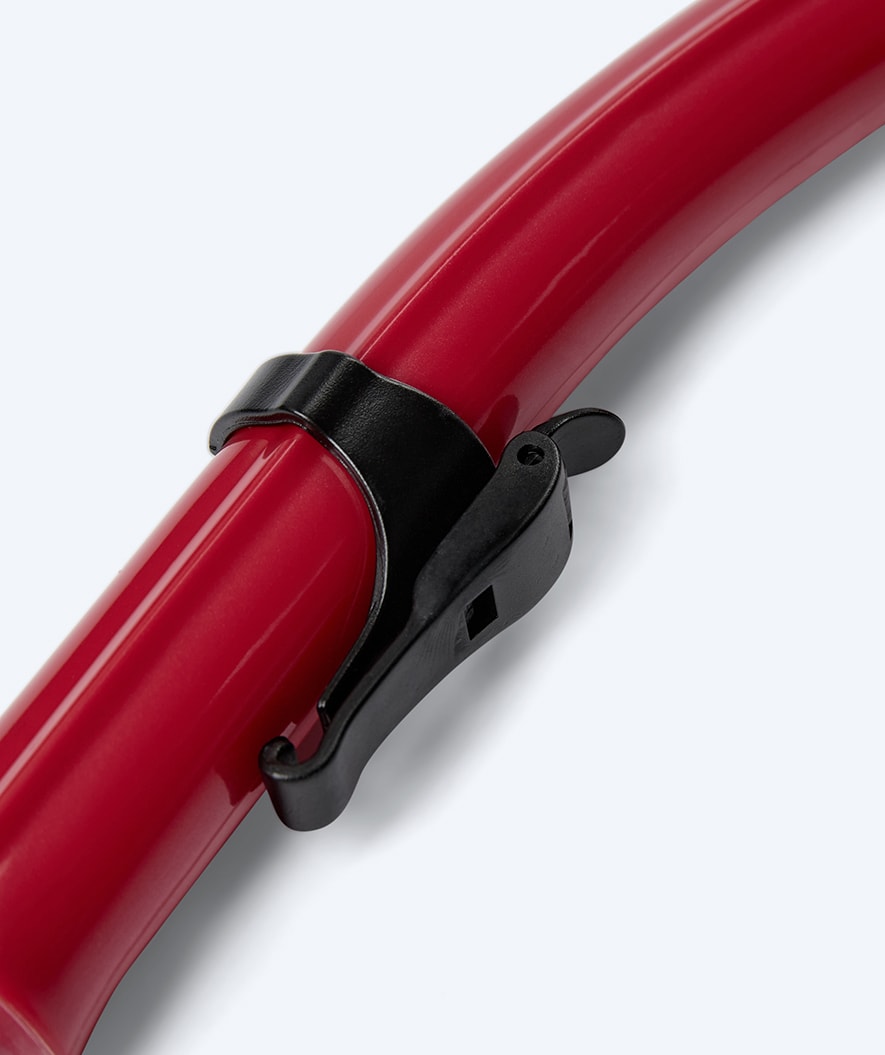 • A simple buckle system in the middle of the snorkel, easily adjustable, making it easy to attach the snorkel to most diving masks