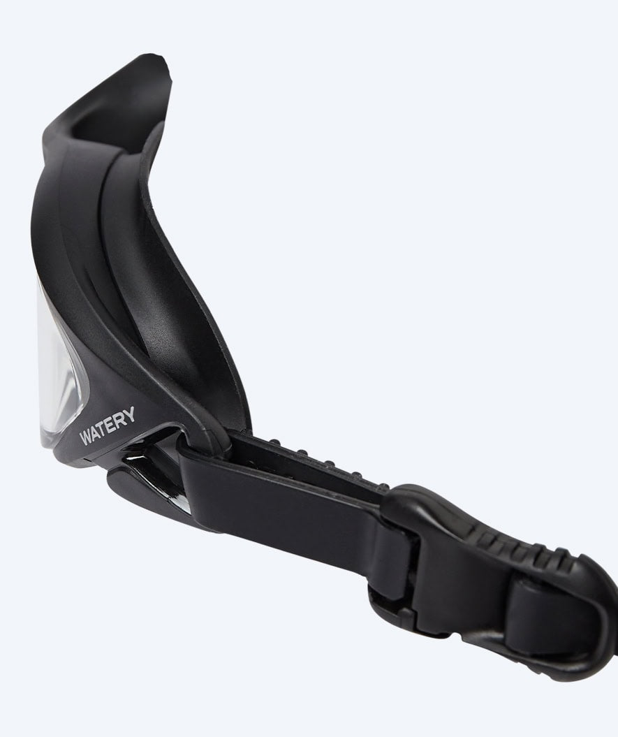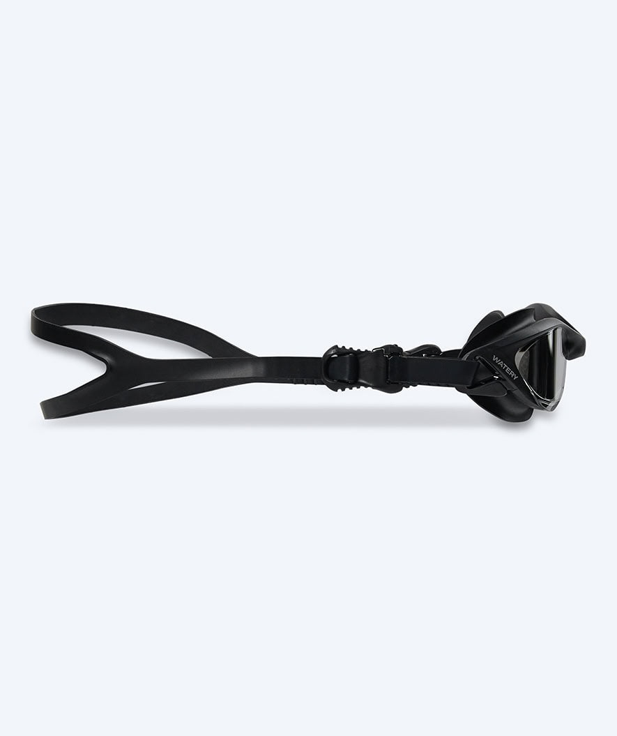 These are our most comfortable swimming goggles with a unique 3D-designed fit that ensures the water stays out of the goggles and doesn't leave marks around the eyes - and that's why the Saunton has quickly become our most popular goggles among both female and male recreational swimmers, open water swimmers, and regular bathers who value comfort and fit the most. Here in the black color with clear glass.