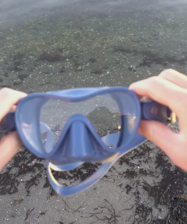 The Cliff diving mask for kids is equipped with one strap, which is then divided at the end, so that the mask will sit tight and correctly - even during longer snorkelling trips. On the straps, small knobs have been added, so that they will stay exactly where you put them to start with.