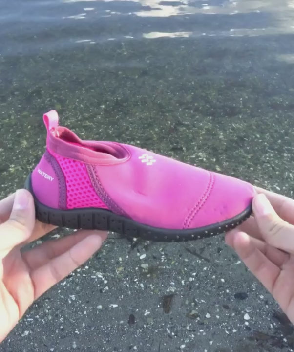 The Watery High Catfish swim shoes for kids are available in 4 fresh colours, here in pink. It is also available in dark blue, black, and grey. It is a very lightweight swim shoe that your kid will hardly notice they have on their foot. With this swim shoe, your kid can run around freely, explore their curiosity and have a great day at the beach, pool, swimming pool or wherever else your kid goes.