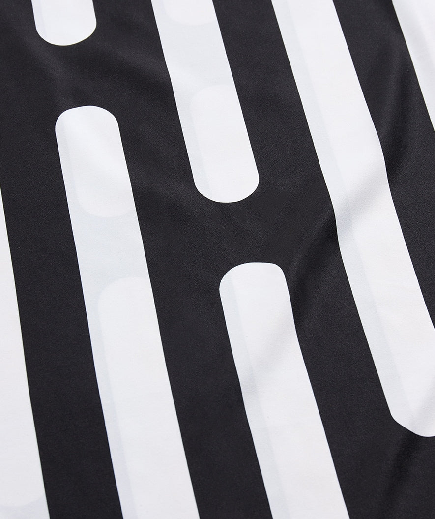 The stylish design with “broken” lines with rounded edges in a bright white colour in the middle of the towel brings to mind summer and sun and emphasizes the Nordic origin. Here in the colour black, but also available in the colours: Black, dark blue, pink, and purple.