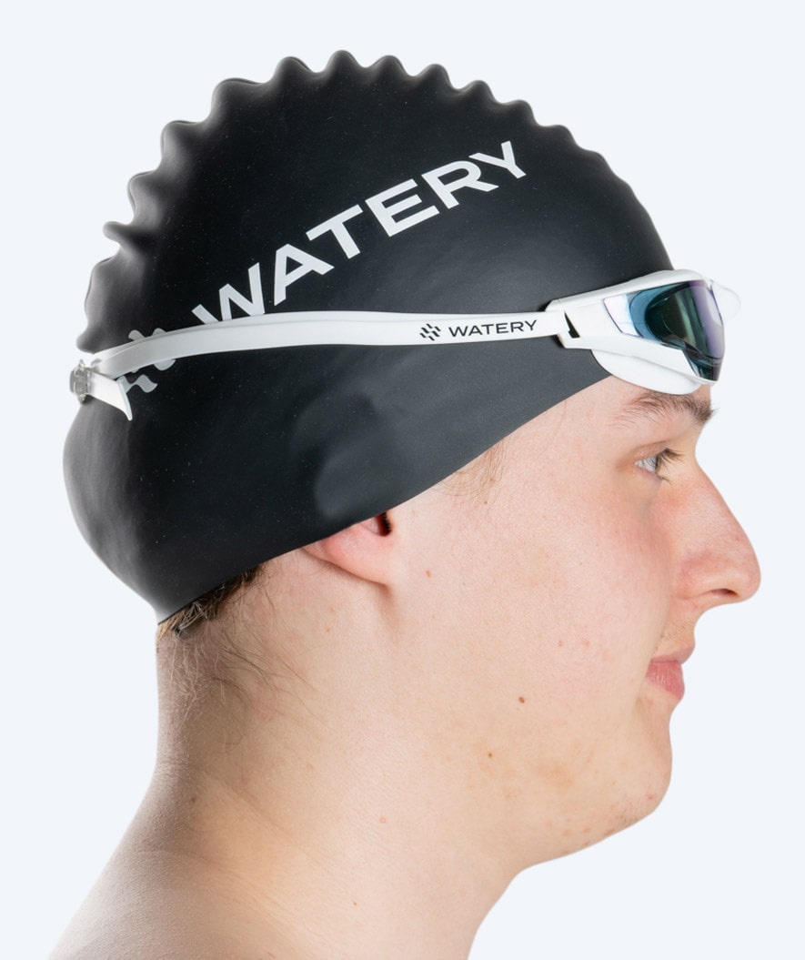 The Watery Instinct Ultra Mirror is our most advanced swim goggle for events and swim training. With a unique hydrodynamic design that minimizes water resistance and especially soft 3D-moulded silicone eyecups for a comfortable and waterproof fit, the Instinct Ultra Mirror provides the optimal conditions for a great swim