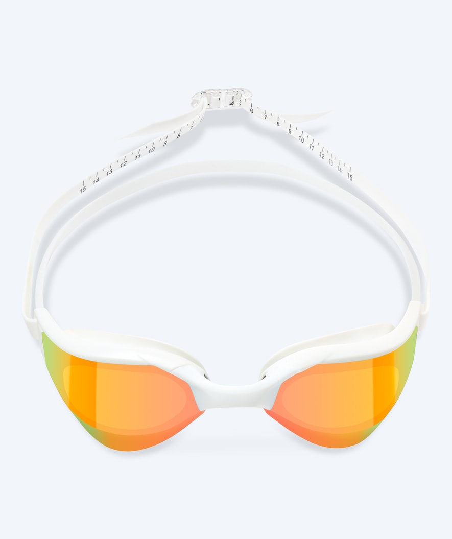 The straps on the Instinct Ultra Mirror are two-piece, so you can position them slightly apart at the back of your head for the most firm and secure fit, so they don't come off during head jumps or take in water. Plus, centimetre markings are added on both straps so you can always adjust the length to the one that suits you best