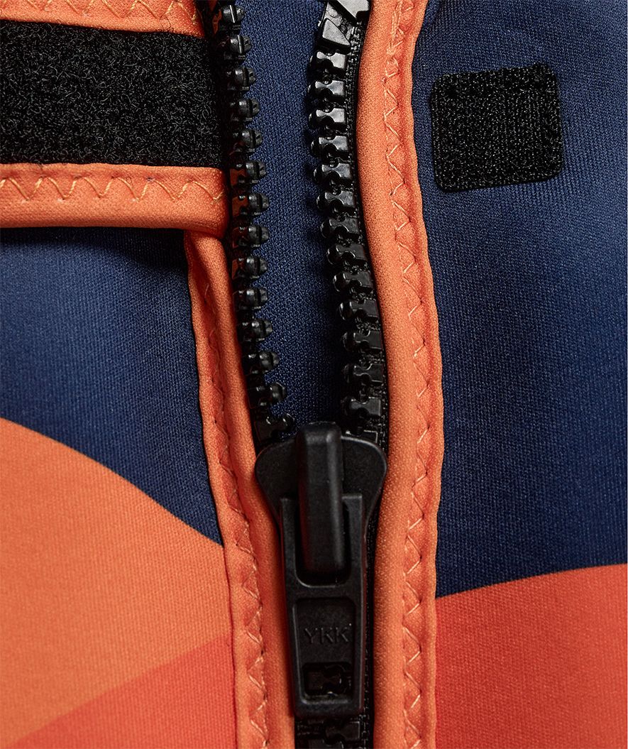 The vest is a must-have for your kids' safety. The watery vest dries quickly and is always ready for use again. The robust zip secures the swimming vest to perfection, and the fabric on the surrounding inside ensures that the zip does not bother the skin.