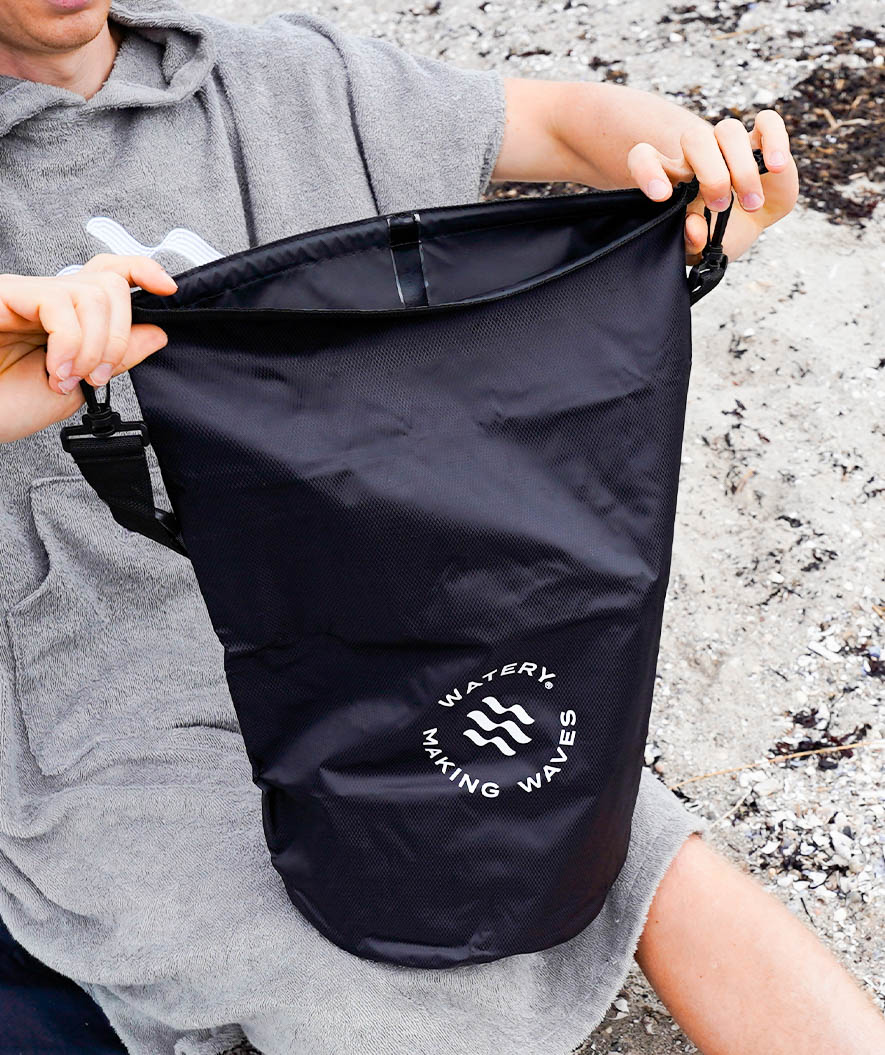 • Watery dry bag has a capacity of 15 L, which is a good medium size, where there is room for both your towel, a swimsuit/swim trunks and keys/wallet etc.