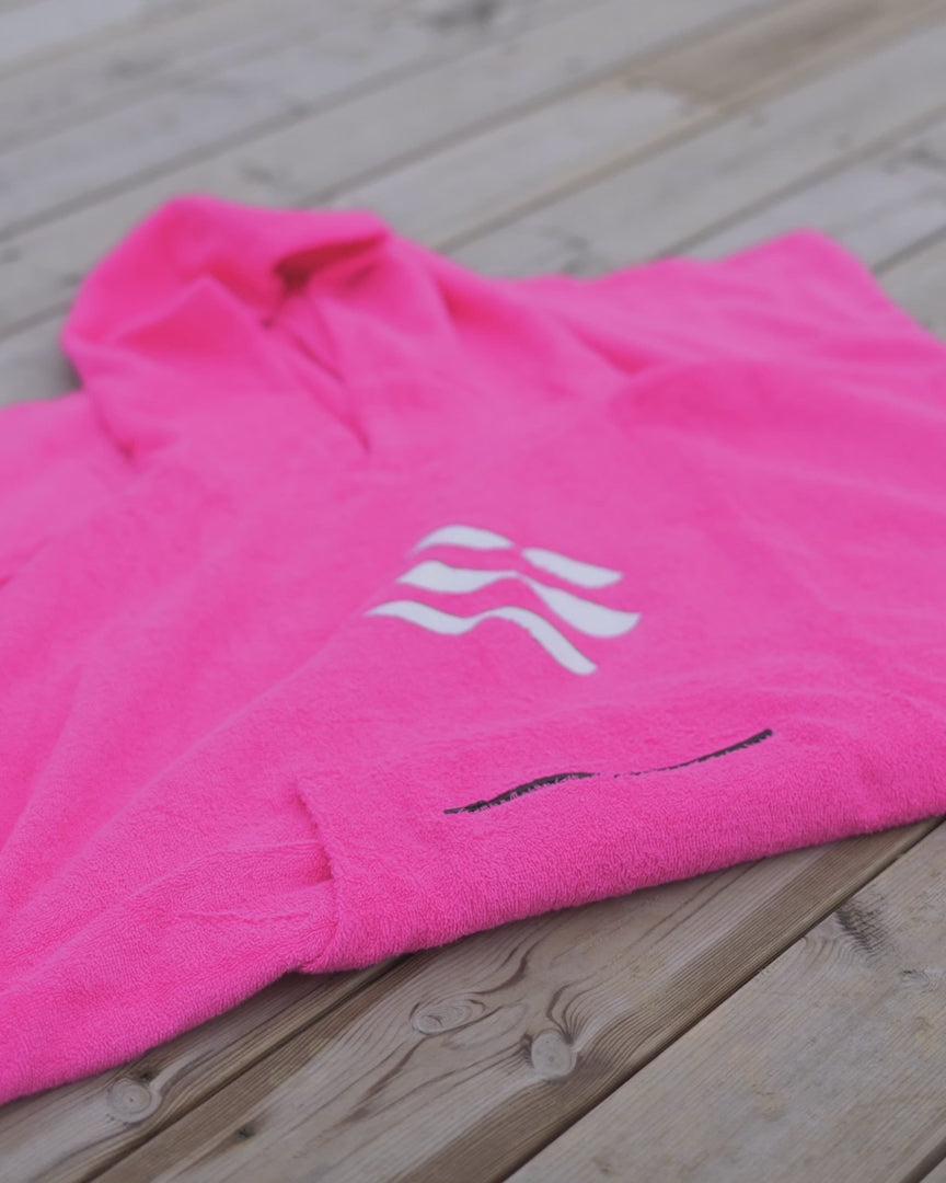 Made from 100% terry cotton, which is particularly warming and water-absorbing, but at the same time lightweight and quick-drying, so you'll be dry and warm quickly, but won't have to wait a long time for the poncho to dry again