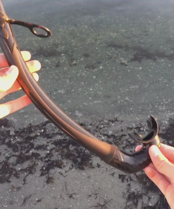 The colours in which the Watery Cliff snorkel is available don't get much more Nordic and stylish. Here in the beautiful black colour, suitable for the sparkling light blue warm water in the south on a real summer day.