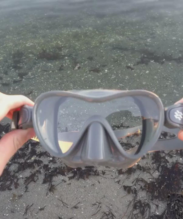 The Cliff diving mask for kids is equipped with one strap, which is then divided at the end, so that the mask will sit tight and correctly - even during longer snorkelling trips. On the straps, small knobs have been added, so that they will stay exactly where you put them to start with.