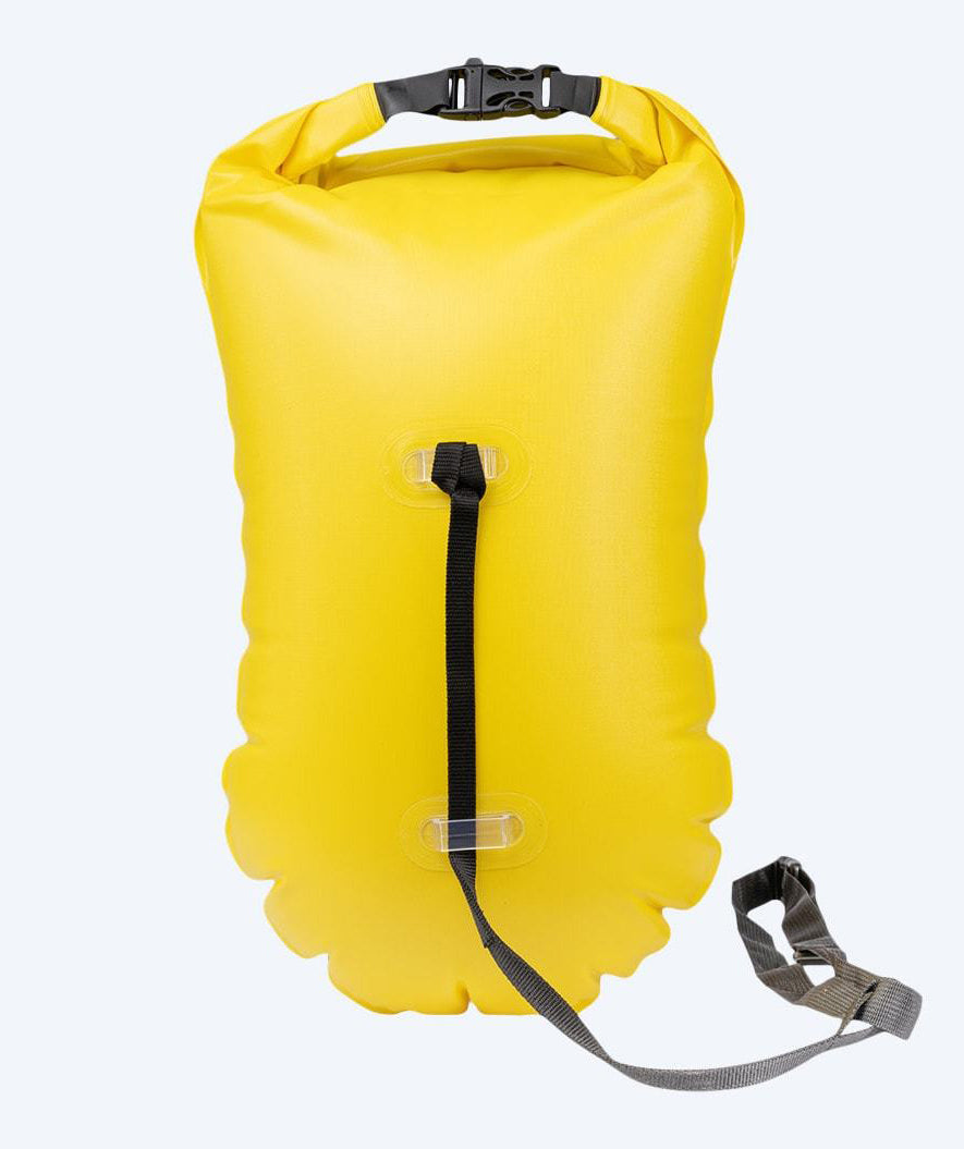 • The Watery PVC Swim Buoy & Dry Bag is here in the colourful yellow colour, which provides a high degree of visibility to others who are also in and on the water, as well as people from the shore. This model is also available in several other flashy colours: pink and orange