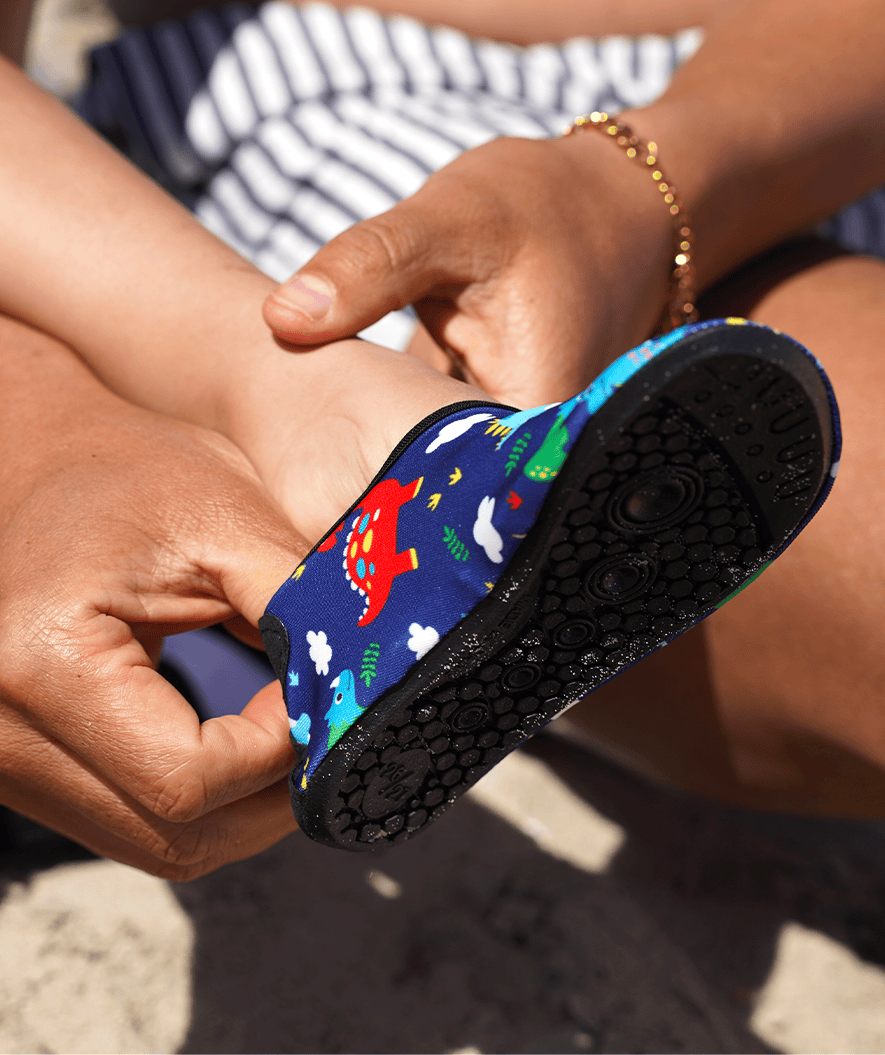 • The rubber sole protects the feet from sharp objects such as rocks and shells.