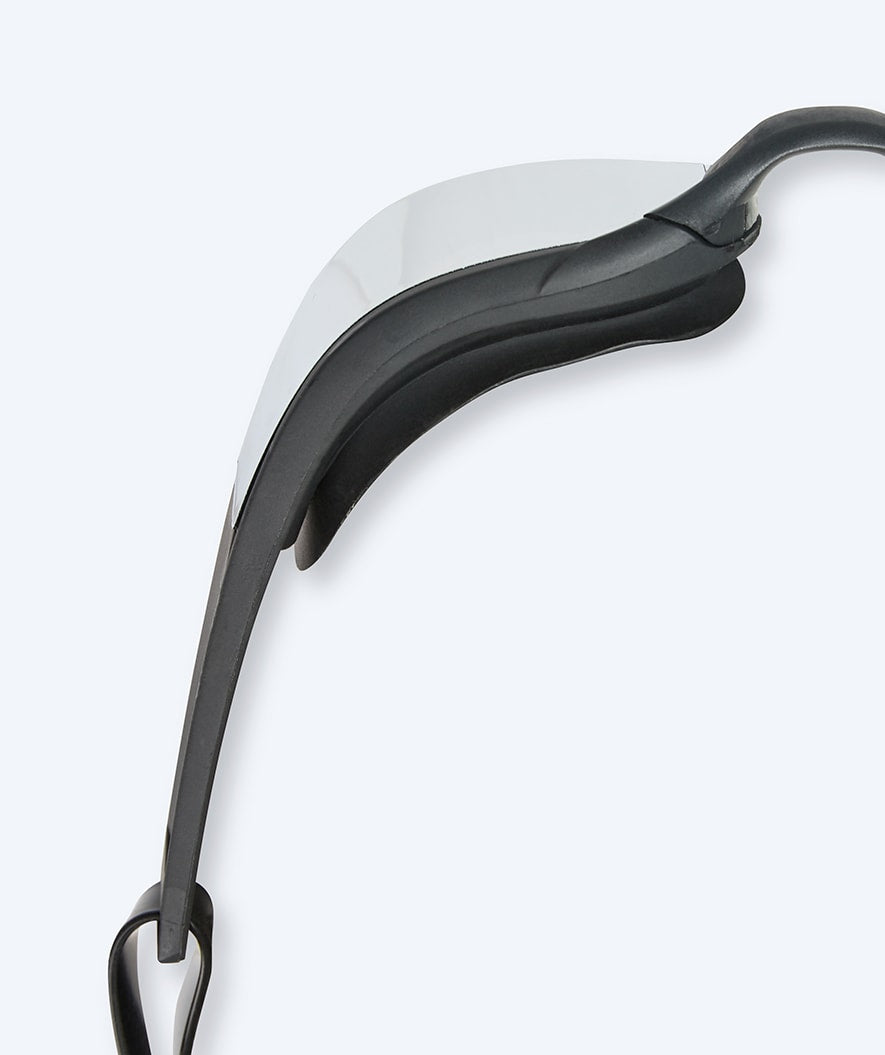 Instinct Elite Mirror is designed with curved High-definition lenses, offering the widest possible 180-degree view to both sides, so you always have full orientation underwater. Furthermore, the high-definition lenses mean that despite the wide view, you still have sharp vision right to the edges, where with regular lenses you’d only find sharpness in the lens's centre - i.e., when looking straight ahead through the goggles