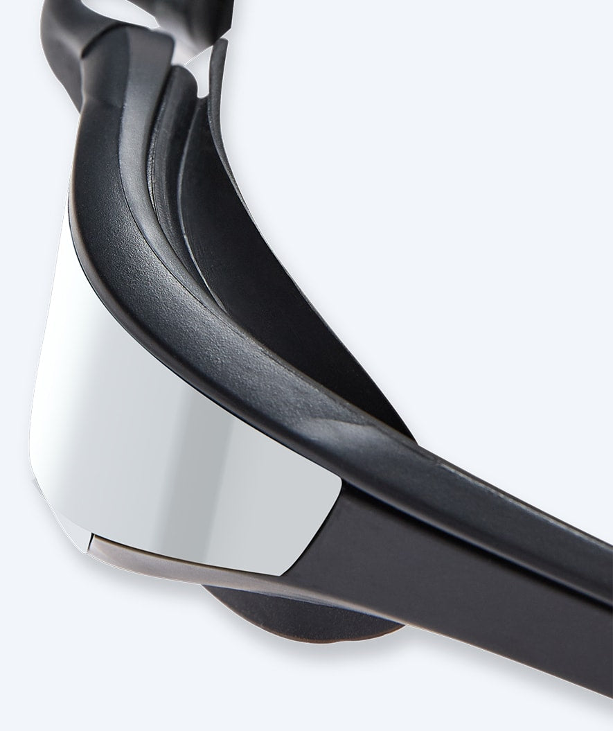 Instinct Elite Mirror has a low-profile frame with rounded lenses, sitting close to the eyes to ensure water flows naturally around the goggles. This means they create minimal water resistance compared to larger masks/goggles that sit around the eyes and 'stop' the water