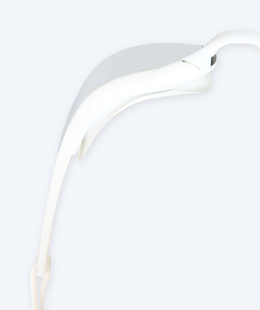 This Instinct Elite Mirror is white with a silver mirror, where it can be used both in the swimming pool and on the beach. Instinct Elite is available in the following colours: black, purple, white, pink, red, and blue. Instinct is available with gold mirror and frames in the colours white, pink and black, as well as with blue mirror with frames that are white and black.