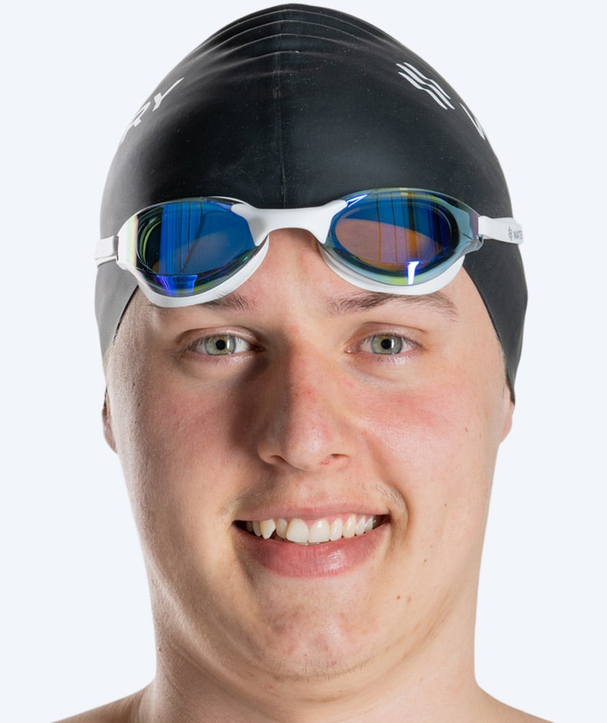 The Watery Instinct Ultra Mirror is our most advanced swim goggle for events and swim training. With a unique hydrodynamic design that minimizes water resistance and especially soft 3D-moulded silicone eyecups for a comfortable and waterproof fit, the Instinct Ultra Mirror provides the optimal conditions for a great swim