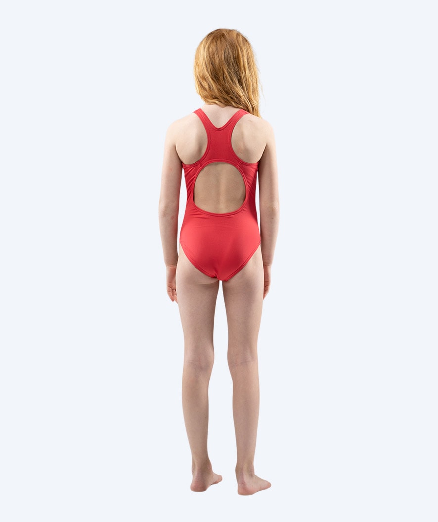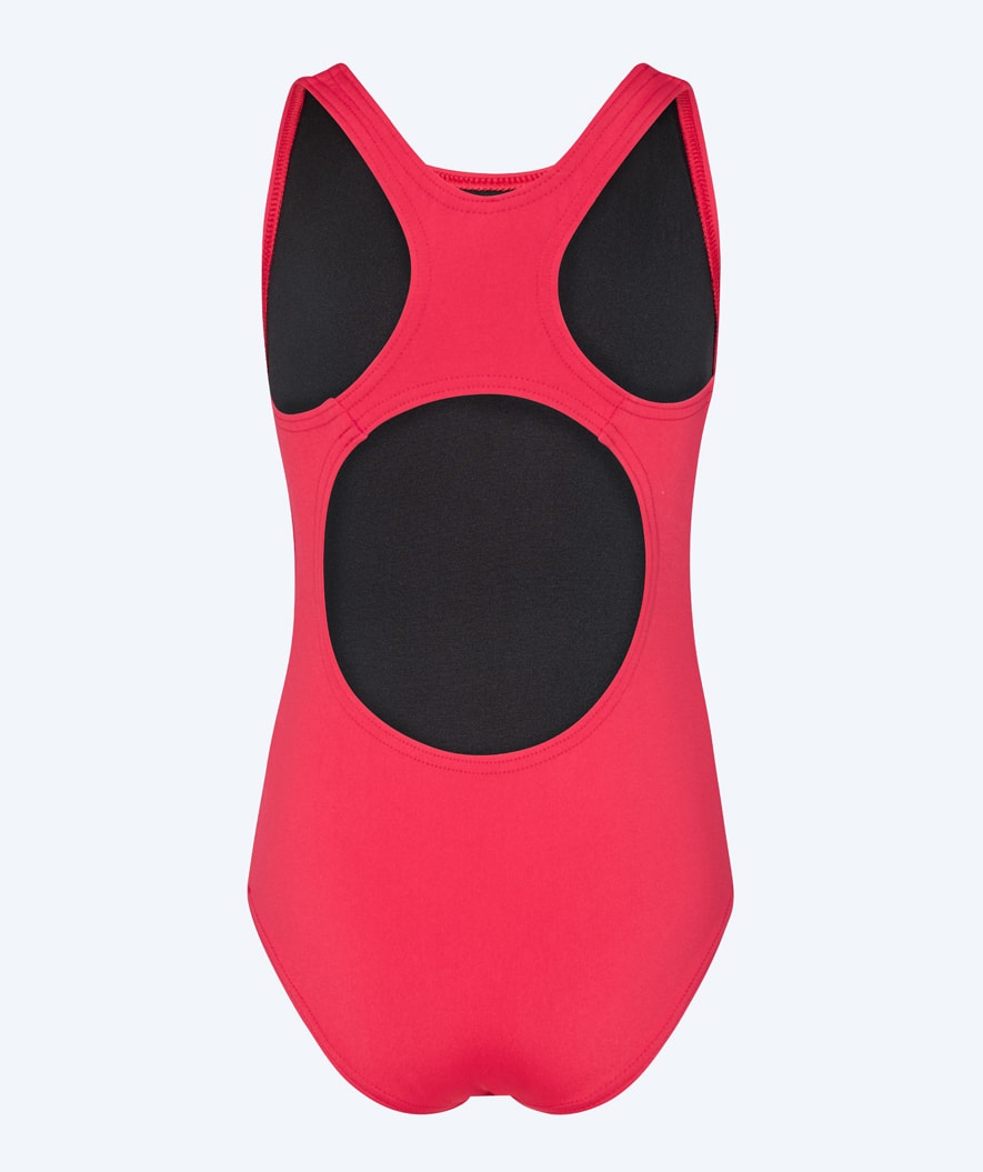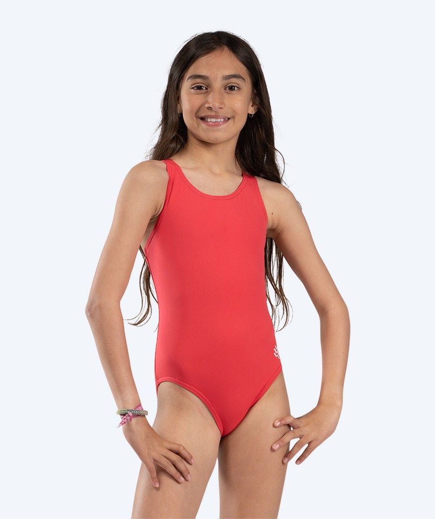 This popular swimsuit is called Pool Party for a special reason. With wide straps, medium-leg cut, a more covered back and made in our chlorine-resistant and even recycled signature material AquaFlex ECO, this swimsuit is optimal for any play and splash in water, both in the swimming pool and at the beach - or to put it another way: A real pool party. With its design, the suit provides optimal support when swimming/splashing wildly, as kids do, and at the same time made of the most durable material available. Here in the colour papaya pink