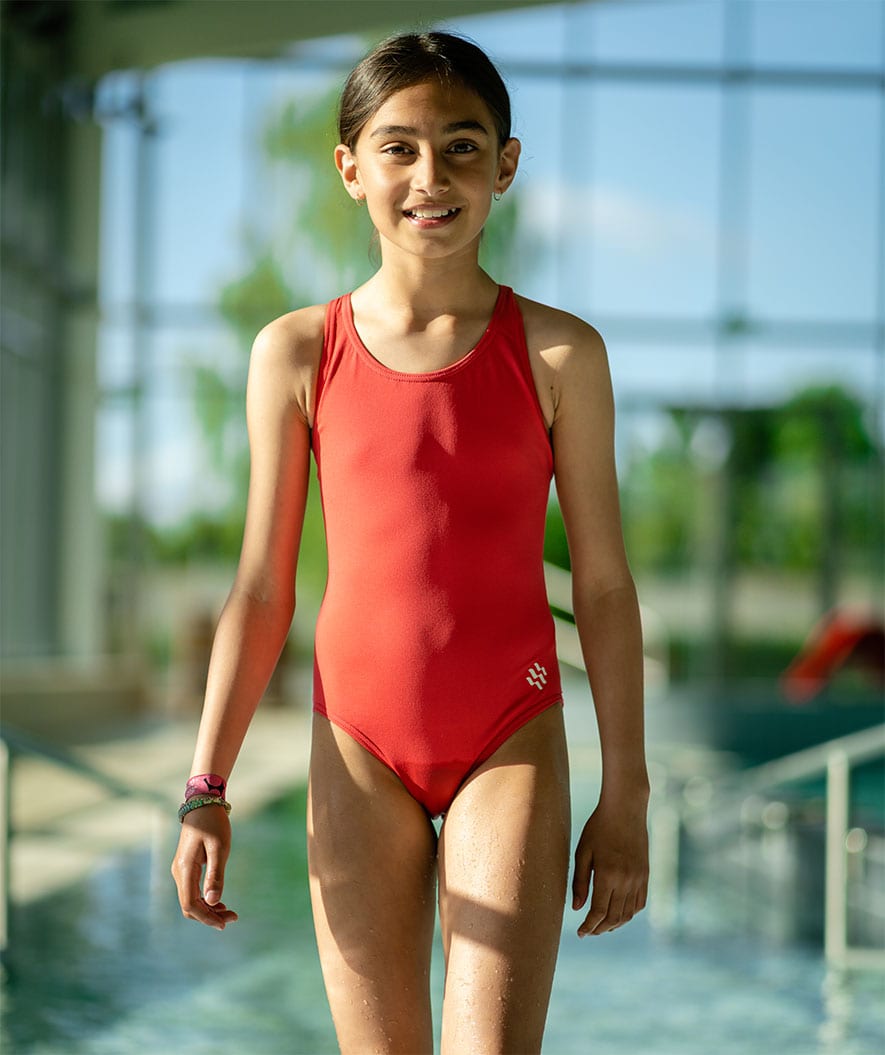 Compared to our other popular model, the Freestyler Solid for girls, this Eco Pool Party model offers more support and coverage in the suit design, with wider straps, a lower leg cut for more coverage at the hips, a firmer back for higher body firmness, a higher chest curvature, and is made from recyclable materials. Conversely, this model is not as sporty in appearance and offers a lesser degree of freedom.
