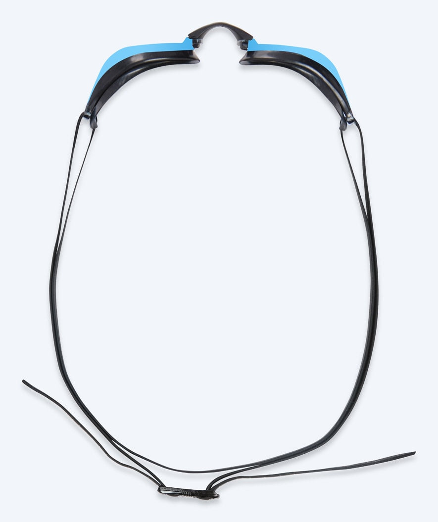 The straps on the Poseidon Mirror are two-piece, so you can position them at the back of the head slightly apart for the most firm and secure fit, so they don't come off during head jumps or take in water. In addition, centimetre markings are added on both straps so you can always adjust the length to the one that suits you best.