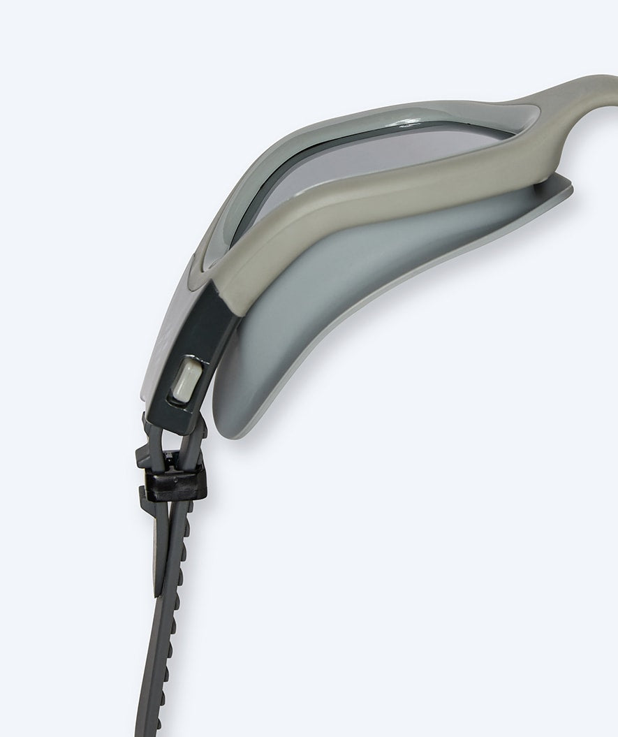 This is our most comfortable swim goggle with a unique 3D-made fit, which ensures that water is kept out of the goggle and does not make marks around the eyes - which is why the Raven Mirror has also quickly become our most popular goggle among both female and male exercisers. Swimmers, open water swimmers as well as regular bathers who value comfort and fit the most. Here in the dark grey and silver mirror