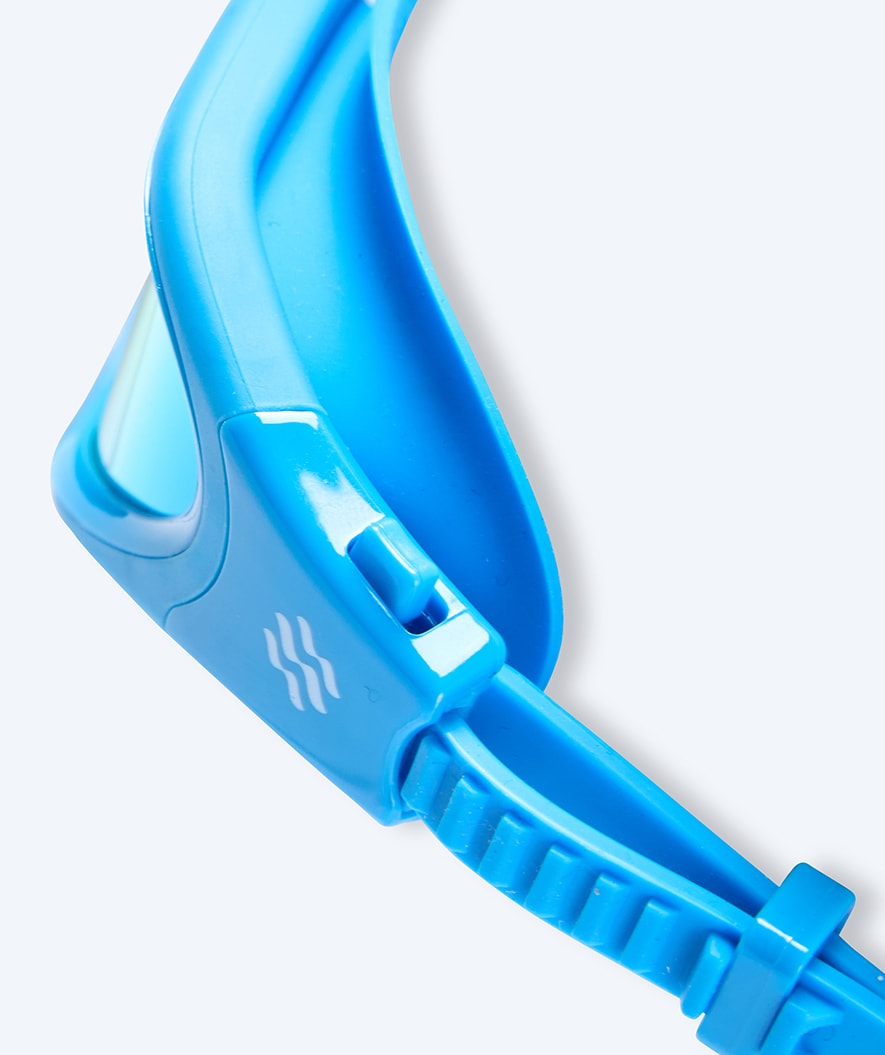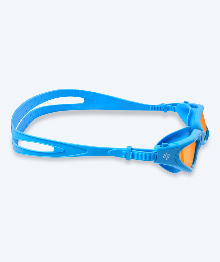 This is our most comfortable swim goggle with a unique 3D-made fit, which ensures that water is kept out of the goggle and does not make marks around the eyes - which is why the Raven Mirror has also quickly become our most popular goggle among both female and male exercisers. Swimmers, open water swimmers as well as regular bathers who value comfort and fit the most. Here in the light blue and gold mirror