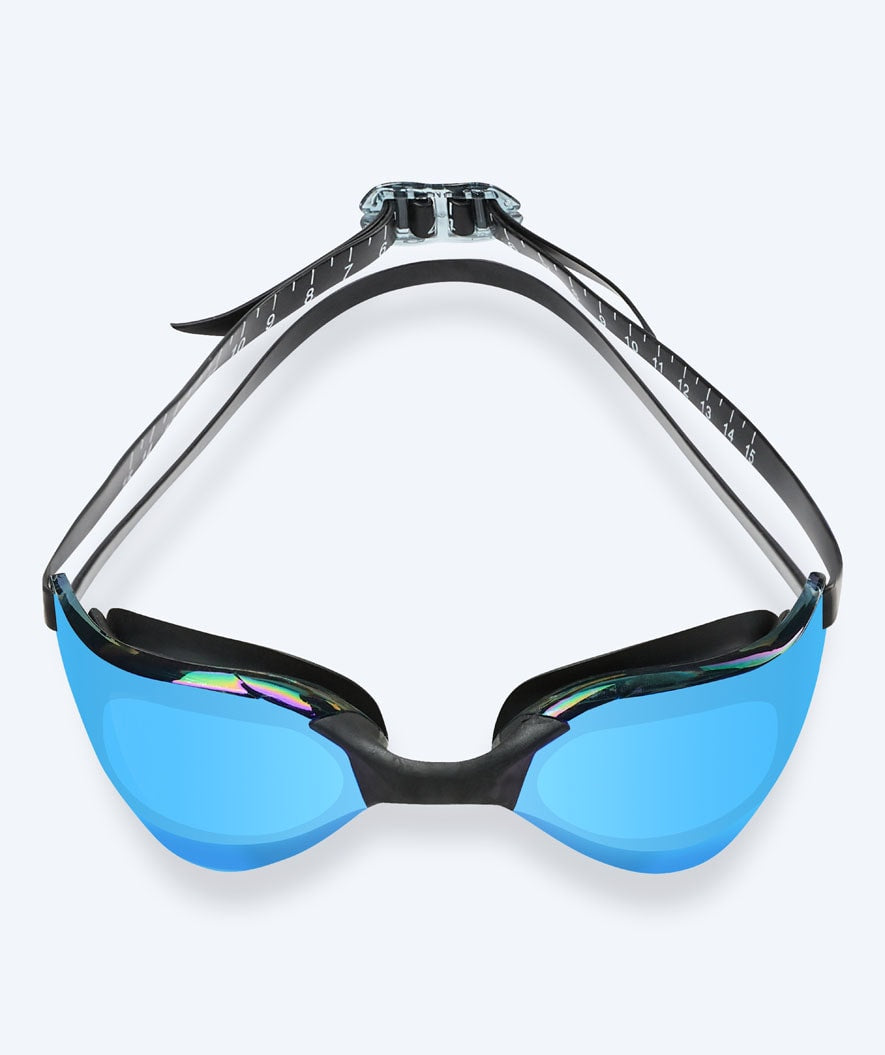 The straps on the Instinct Mirror are double-parted, so you can place them a bit apart at the back of your head to achieve the most secure and firm fit, so they don't come off during diving or take in water. Additionally, centimetre markings are added to both straps, so you can always adjust the length to what suits you best