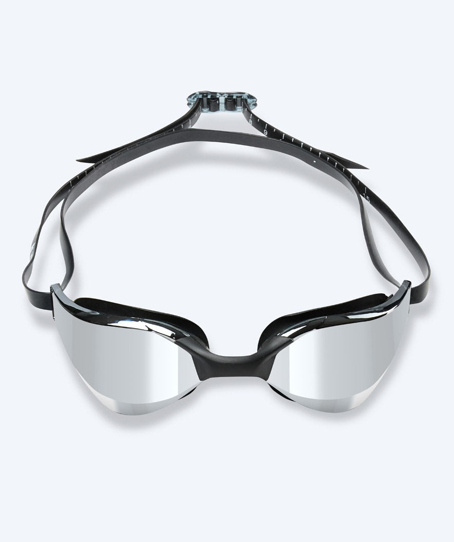 The straps on the Instinct Mirror are double-parted, so you can place them a bit apart at the back of your head to achieve the most secure and firm fit, so they don't come off during diving or take in water. Additionally, centimetre markings are added to both straps, so you can always adjust the length to what suits you best