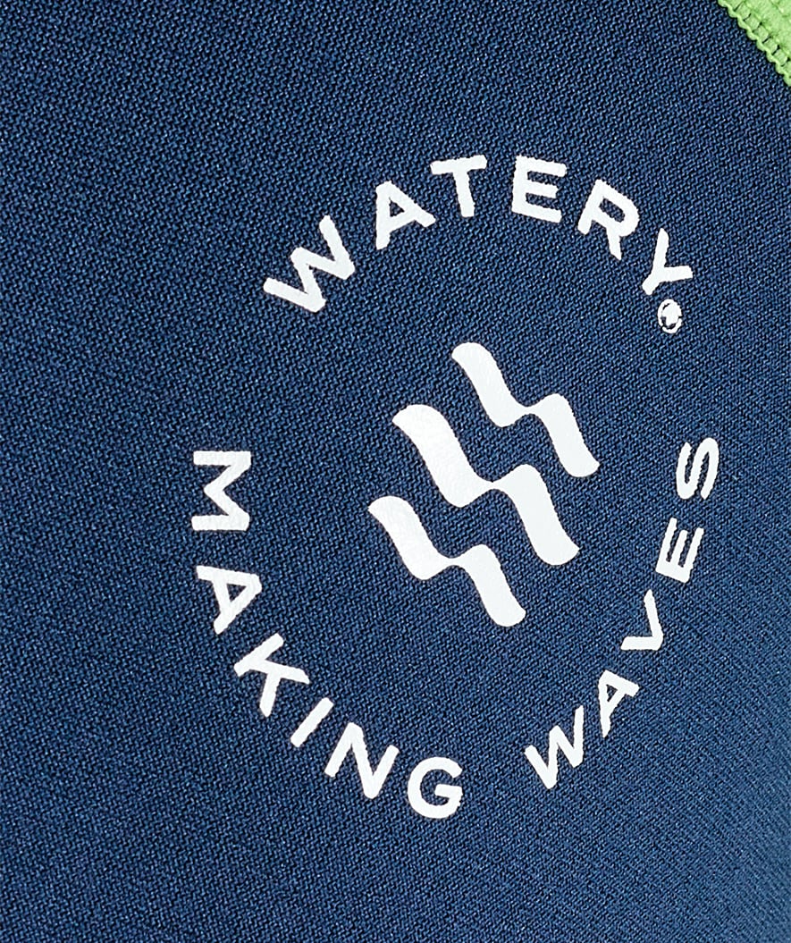 Watery logo added to the front of the chest and at the top of the back