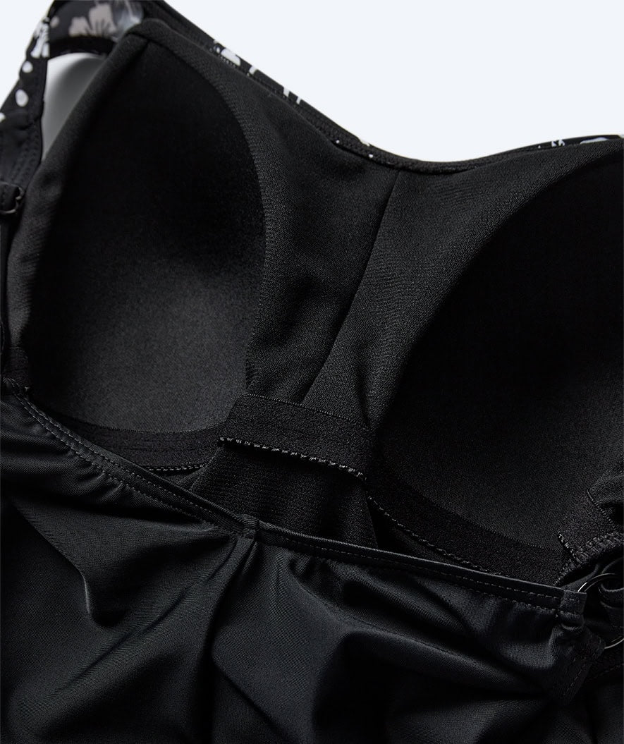 Watery swimsuit plus size for ladies w. flowers - Vale - Black/white