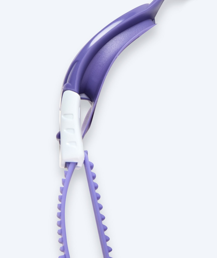 The swim goggles are available in this blue/white model with clear lenses, but are also available in the colours: Pink/white, green/white, pink, purple, orange and light blue.