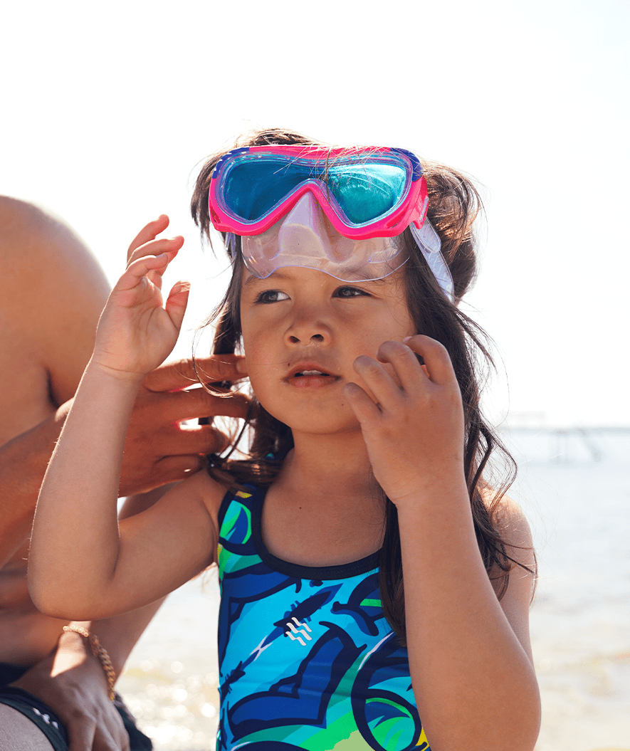 Nerina for juniors is designed with a strap that splits at the end, ensuring a tight and correct fit, even during longer snorkeling trips. Small studs on the straps ensure they stay in place.