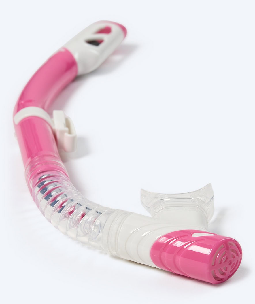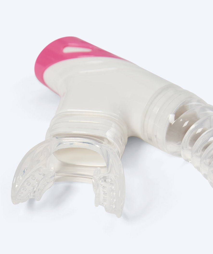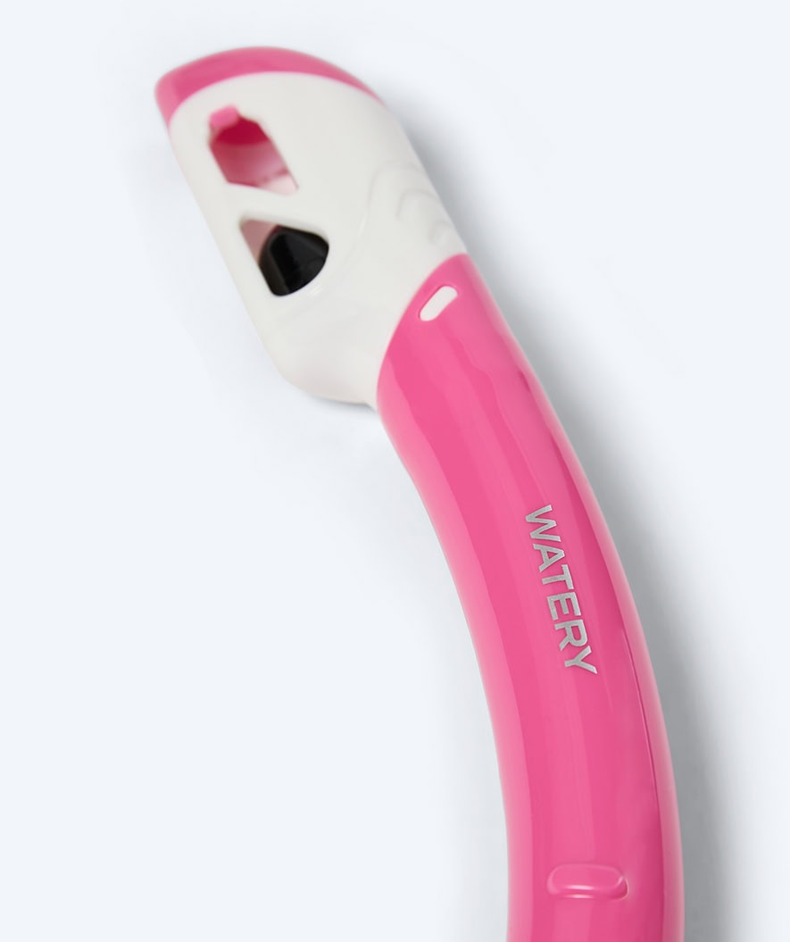 The colors that the Watery Triton 2.0 snorkel for children comes in couldn’t be more Nordic and stylish. Here in the clear pink color, but it is also available in blue, yellow, and green.
