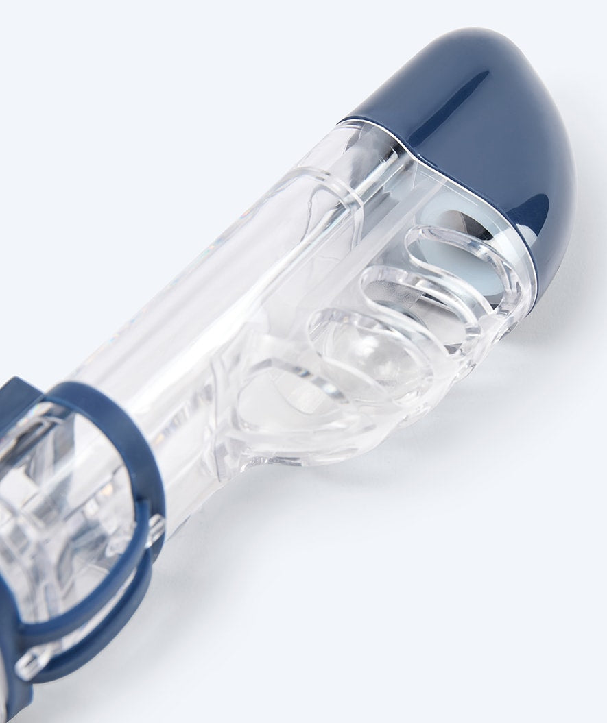 The colours that the Watery Pearl full-face snorkel mask comes in don't get much more Nordic and stylish. Here in the beautiful dark blue colour, but also available in pink, dark green and black. These visible colours also help to ensure clarity for others in the water when you are snoring. This keeps you safer from watercraft.