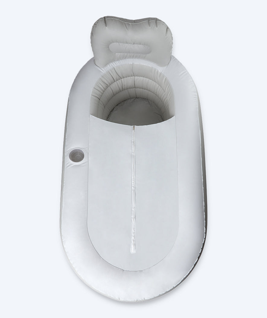 Watery inflatable bathtubs are available here in a grey model, but are also available in dark blue/white and black/white.