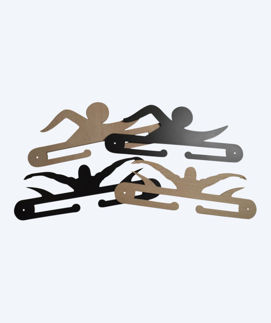 Medal holder and hanger for swimmers with a motif of a crawl swimmer in Matt black
