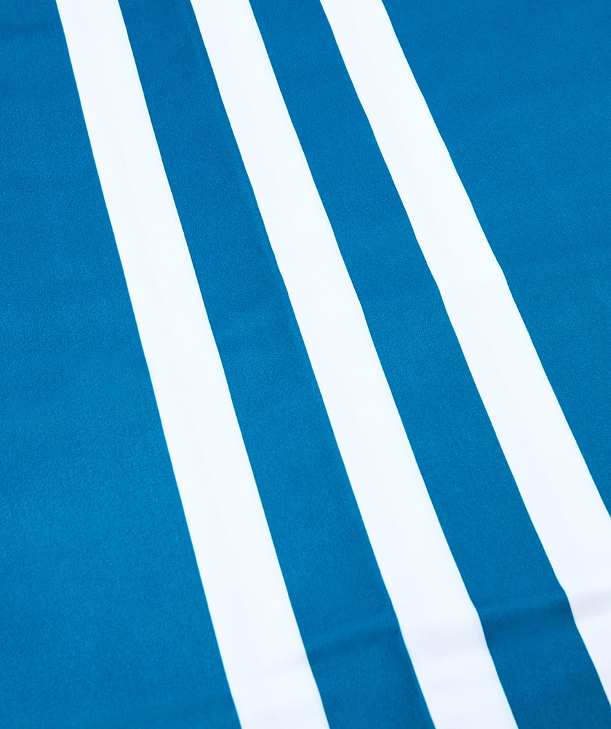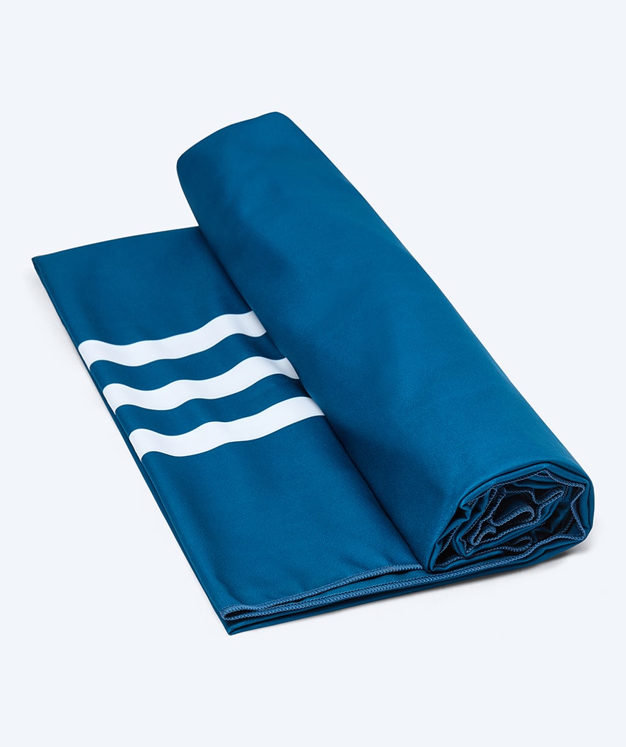 The clean design with two white lines at each end of the towel brings to mind summer and sun and emphasizes the Nordic origin. Here in the colour dark blue, but also available in the colours: blue, black, sand-coloured and purple.