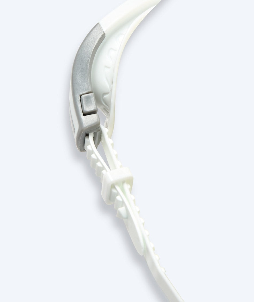 As our only exercise swim goggle, Kelvin Active is made entirely without hard plastic parts. On the other hand, the eye cup and frame are constructed in one piece of completely soft silicone, which both ensures that water cannot run in between, but also that the experience on the eyes will be without red marks and irritation - not even after several hours of swimming.