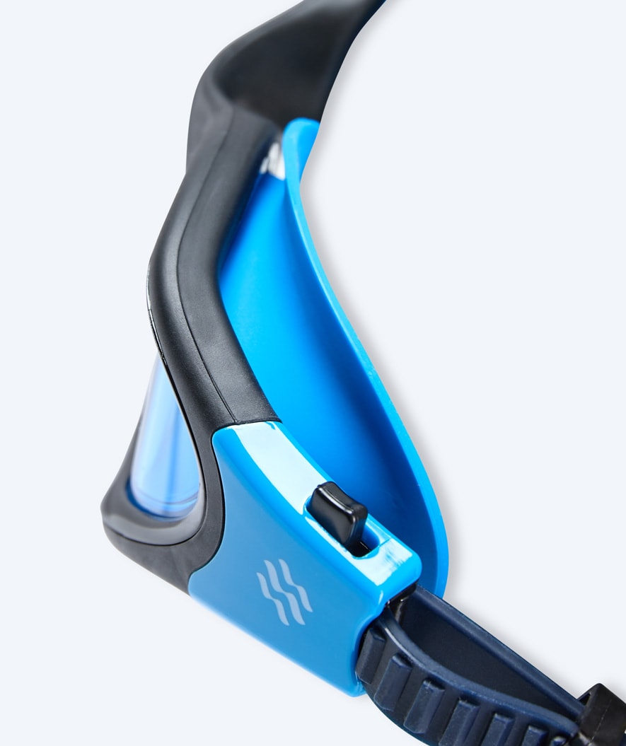This is our most comfortable swim goggle with a unique 3D-made fit, which ensures that water is kept out of the goggle and does not make marks around the eyes - which is why Raven Active has also quickly become our most popular goggle among both female and male exercisers. Swimmers, open water swimmers as well as regular bathers who value comfort and fit the most. Here in the blue colour with light blue glass