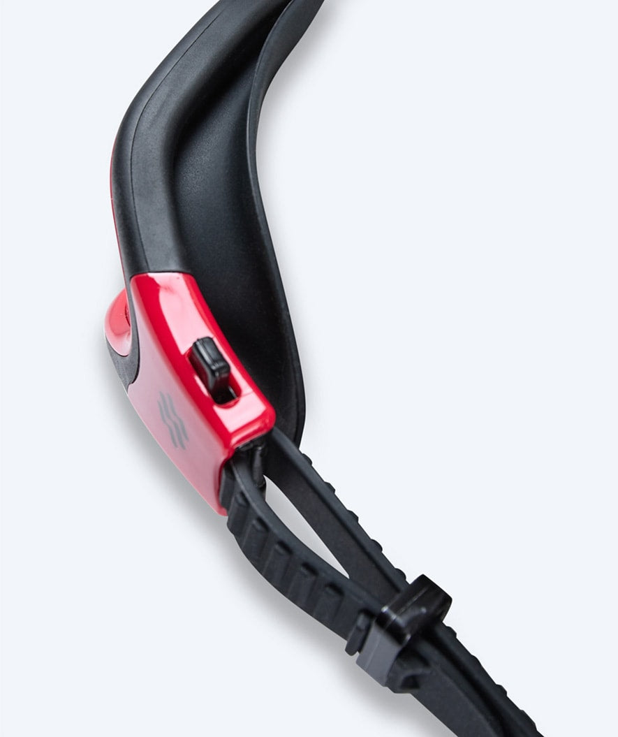 This is our most comfortable swim goggle with a unique 3D-made fit, which ensures that water is kept out of the goggle and does not make marks around the eyes - which is why the Raven Mirror has also quickly become our most popular goggle among both female and male exercisers. Swimmers, open water swimmers as well as regular bathers who value comfort and fit the most. Here in the black and red mirror