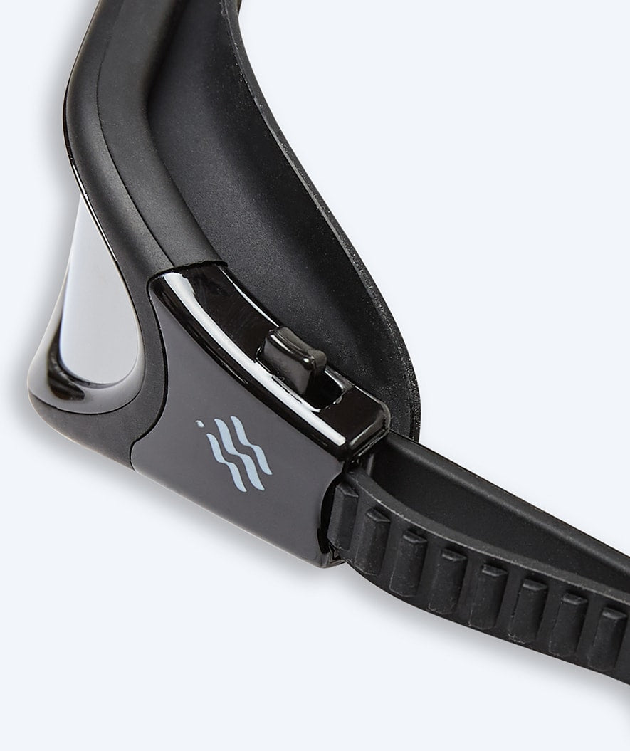 This is our most comfortable swim goggle with a unique 3D-made fit, which ensures that water is kept out of the goggle and does not make marks around the eyes - which is why the Raven Mirror has also quickly become our most popular goggle among both female and male exercisers. Swimmers, open water swimmers as well as regular bathers who value comfort and fit the most. Here in the black and silver mirror