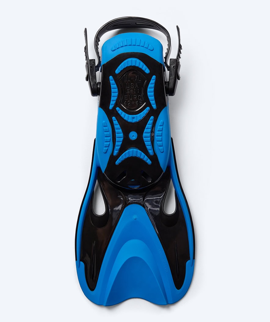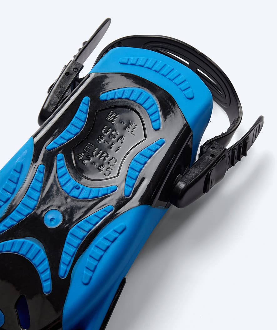 The large and flexible fin blade at the end provides a powerful response when you kick in the water, ensuring greater propulsion. The fact that the blade is also particularly flexible means you use less energy, thus reducing the risk of muscle fatigue and cramps.