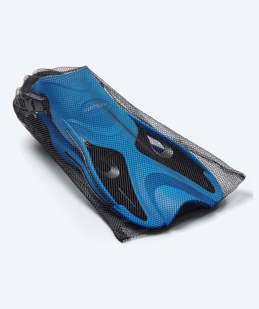 When you receive your Fisher diving fins, they come in a customized net that you can use for storage and transport again and again. The swim net is made of black nylon material with holes, allowing water to drain and the diving fins to dry