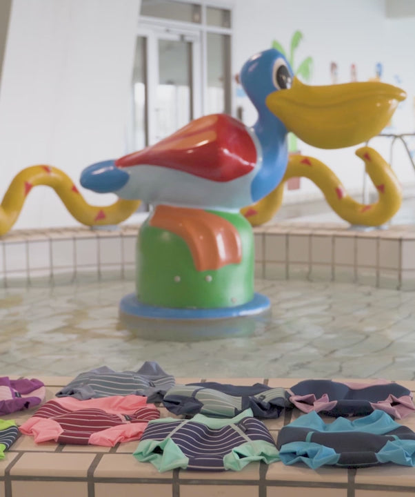 Reusable swim diapers like these are estimated to emit 1.5 to 2.5 times less CO2 during production compared to disposable diapers.