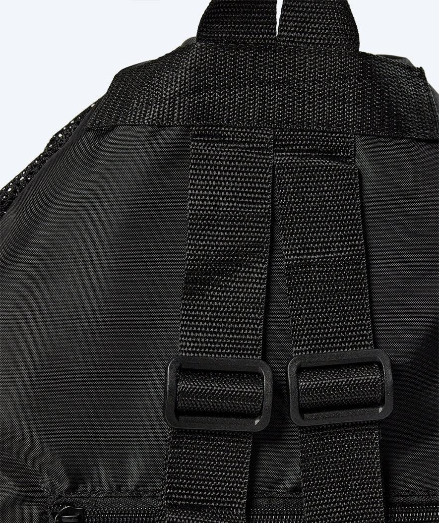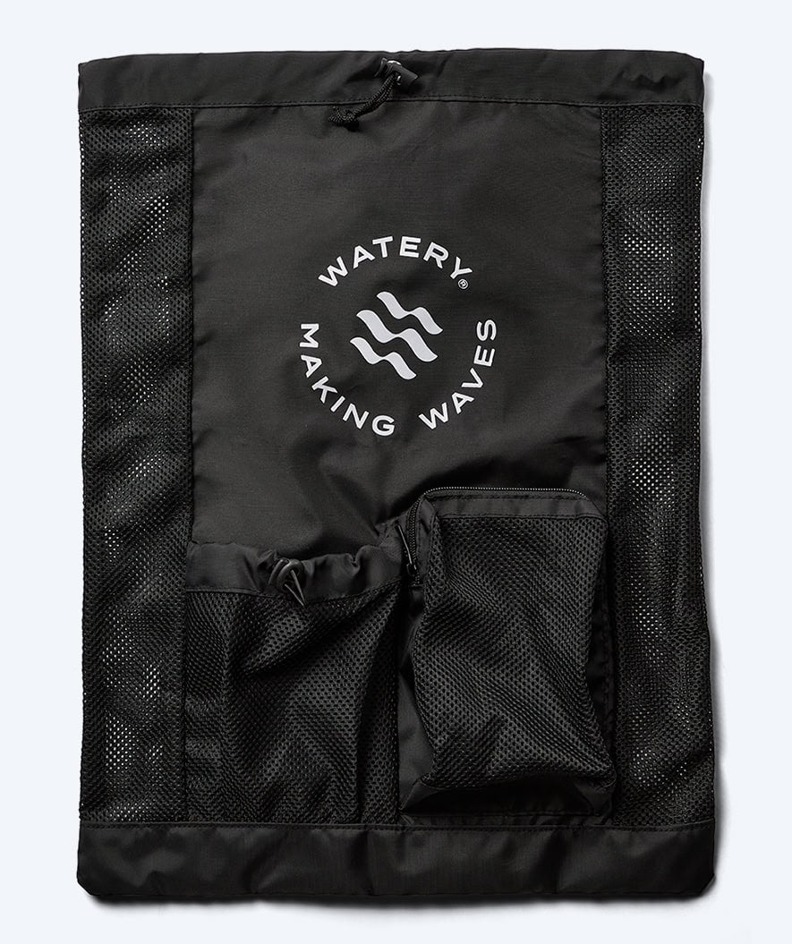 With the Watery Ultra Light swim net, you get a well-thought-out net with several compartments and enough space to transport and store all your swimming equipment to and from the pool. There's room for a swim board, swim fins, snorkel, finger paddles, pull buoy, etc. without it being a struggle to get in every time - and with two extra compartments on the front of the net for a water bottle, swim goggles, earplugs and an extra waterproof compartment on the back for your phone/wallet. Easily carried by hand with the handle on the strap, or on your back with the two adjustable shoulder straps. Here in black