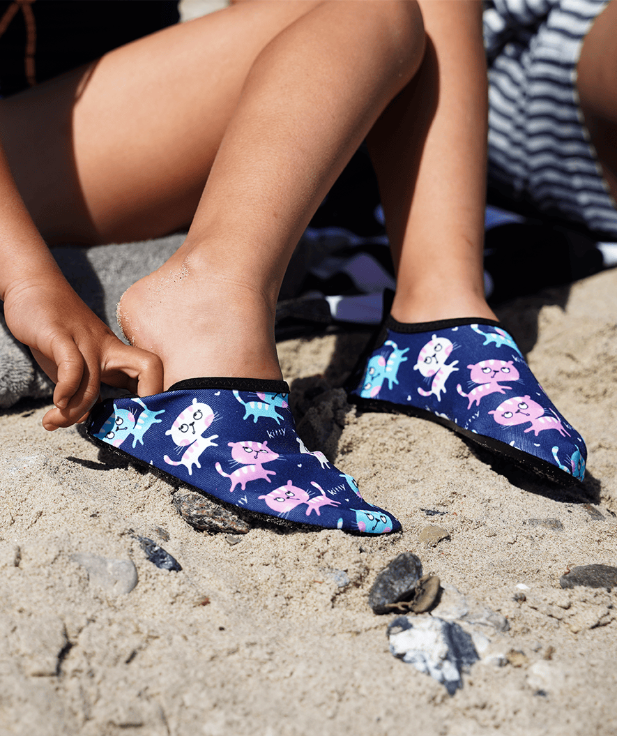 The Watery Irving swim shoes for kids, here with stylish cats, are a popular choice for kids who love to get around the water - both beside and in it. Available in sizes from 22-35, the swim shoes are designed to be both stylish and functional