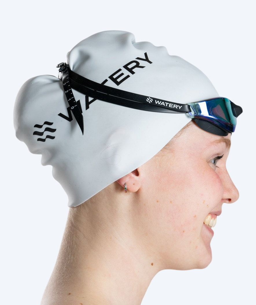The straps on the Instinct Mirror are double-parted, so you can place them a bit apart at the back of your head to achieve the most secure and firm fit, so they don't come off during diving or take in water. Additionally, centimetre markings are added to both straps, so you can always adjust the length to what suits you best