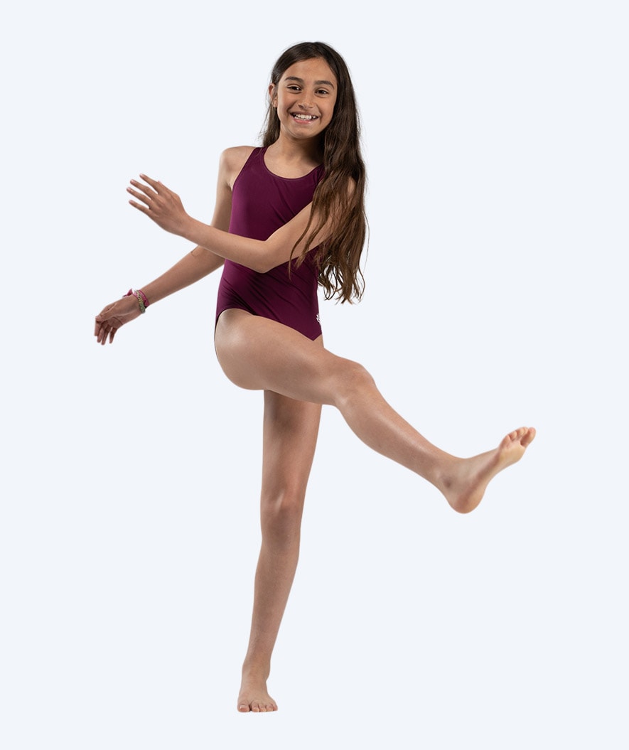 This popular swimsuit is called Pool Party for a special reason. With wide straps, medium-leg cut, a more covered back and made in our chlorine-resistant and even recycled signature material AquaFlex ECO, this swimsuit is optimal for any play and splash in water, both in the swimming pool and at the beach - or to put it another way: A real pool party. With its design, the suit provides optimal support when swimming/splashing wildly, as kids do, and at the same time made of the most durable material available. Here in the colour ruby red